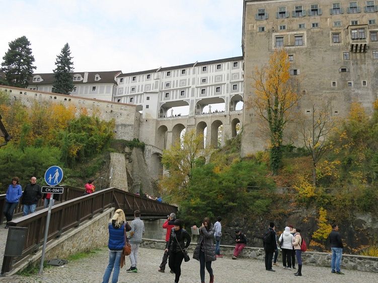 鉄道でプラハへ移動しながらチェスキークルムロフへ立ち寄ろうと思いましたがなかなか不便な場所。ツアーへ乗ってしまえばお昼前にチェスキークルムロフへ到着。ランチをしながらのんびり観光出来ます。大きな荷物も預かって貰えるので、身軽で観光出来ます