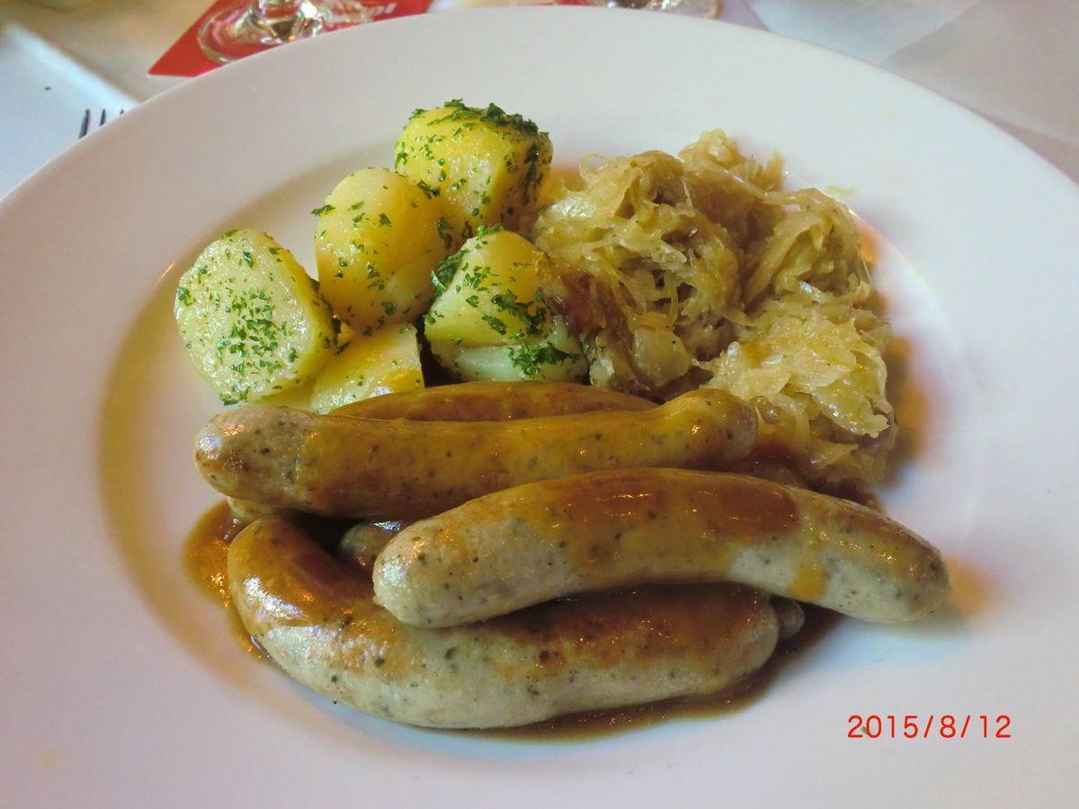 現地の人がよくやっているソーセージ(1本ものすごく長くて4ユーロくらい)のかぶりつきをやってみてとガイドさんが言っていたが、まだ午前中でカフェザッハーが空いていたので、翌日の午後行く予定を急遽変更して行ってみた。