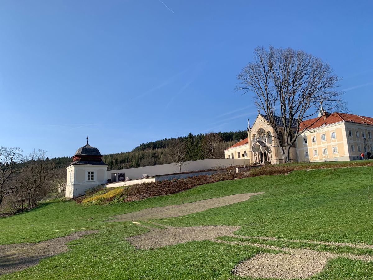 ハイリゲンクロイツ修道院はこじんまりとして、教会内部を覗くことはできましたが修道院の見学ツアーは含まれていません。修道院のトイレ使用に0.5€かかりますが、そのレシート?でショップ内の買い物が0.5€割引になります。
