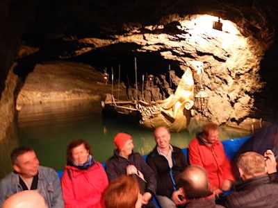 午後は一人参加で、日本出身の新人のガイドさんとオーストリア出身の運転手さんでした。ウィーンの森へ向かう途中に車窓からの建物の紹介や歴史的な説明をして下さって、地底湖は神秘的で迫力もありました。