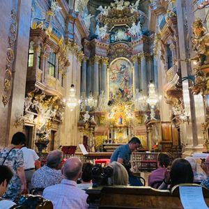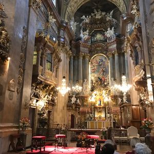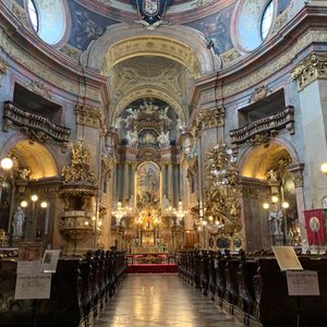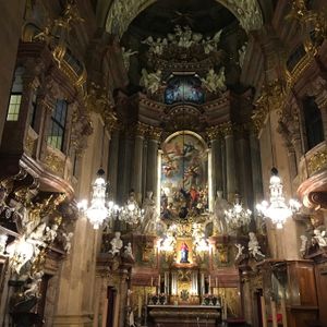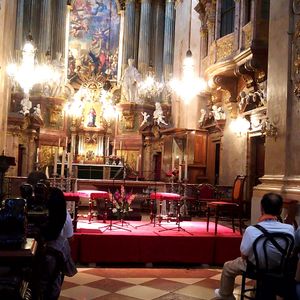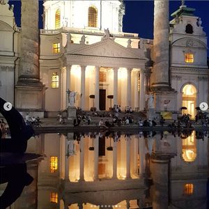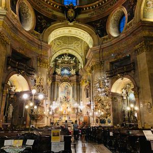 今回大きなホールでのコンサートとこちらのカールス教会と両方行きましたがどちらもとてもオススメです さすがウィーン音楽の街ですね 小さな教会でしたが目の前で聴けるという特典があり とても素敵な教会で オーケストラの方々も素晴らしい演奏でした 私はピアノを弾きますし色々なコンサートにも行っていますがこちらのコンサートはベスト3に入ると感じました ぜひオススメです お一人の方でも良いですよ 夜の教会はとても綺麗でした