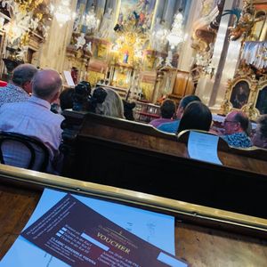 バウチャーは入口受付の係員に見せると、チケット(席No.記載されたもの)と交換してくれます。5月でこの日は特別寒かったのですが、満員の観客にも関わらず、座席に着く前に全員にブランケットを配布してくれました。また座席足元は暖房が入っており、寒さを感じることなく、快適な環境で素晴らしい音楽に浸ることができました。この日、モーツアルトのレクイエムをミニオーケストラがパフォーマンスしてくれました。コーラスもとても幻想的でよく、指揮者の方もとても動きに魅了される指揮で、全てとても良かったです。あっという間に時間が過ぎ、長すぎずそれも良かったです。M3地下鉄駅からもとてもアクセス良かったです。またコンサート後、教会内のライトと控えめな外の照明で良い雰囲気を醸し出していました。教会のコンサートはとても幻想的でオペラ座やコンサートホールとは、またちょっと違う雰囲気です。ドレスコードがなく、気軽に行って、本格的な音楽が聴けるので、是非お勧めです。