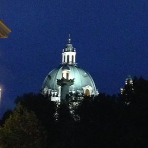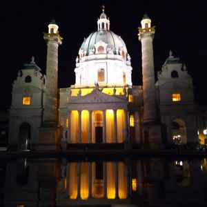 教会がライトアップされていてとてもキレイでした。教会の前にある池には涼みに来ている方が沢山いて、カールスプラッツ駅も近く、公園の中なこともあり、夜一人でも安心でした。