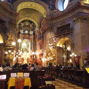 10/31(日)ウィーンの中心、シュテファン寺院より徒歩3分と近いペータース教会の夜のコンサートに行ってきました。カジュアルな格好でドイツ.ウィーンの旅行をしている最中で気楽に楽しめるクラッシックコンサートを探していたところ、偶然ネットで見つける事ができました。本当にラッキーでした!(私はAチケットをネットで購入し、バウチャーを宿泊ホテルにfaxする方法をとりました)