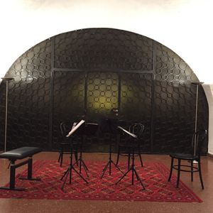 祭壇の前でなく、地下の天井が低い部屋でのコンサートです。
