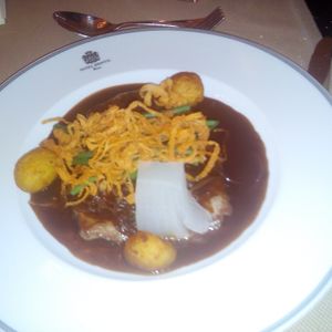 ホテルの高級レストランの食事は、メインの肉料理からデザートまで全て非常に甘かったです。