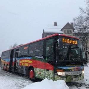 自力では行きづらい場所だったのでバスで連れて行ってくれるのがありがたかったです。バス内でロープウェイの乗車券を買うか聞かれます。ハルシュタットに行く途中、景色の良いところで10分程度写真撮影のためにとまってくれましたが、1組のご夫婦が置いていかれて後からタクシーで合流するというハプニングがあり、置いていかれるんじゃないかと少し怖かったです。