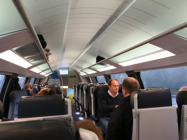 行きの列車は国鉄のレイルジェット2等指定席です。真新しい列車で快適です。