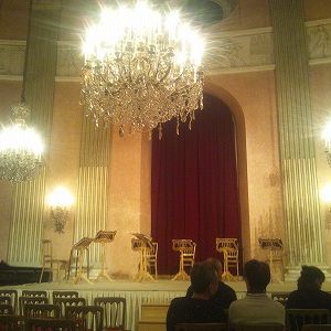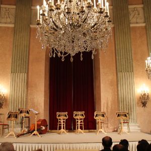 部屋は思ったより小さく、舞踏会の会場に舞台を作り、椅子を運んでセットしたもので