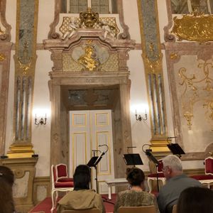 旅行最後の夜に参加。宮殿で聞く弦楽4重奏に大好きなオーボエの音色が重なりとても心地よい音色を奏でておりました。願わくば、万人が知っている曲で構成いただけるとありがたかったです。クラシックの経験者には判る曲も普段あまりクラシックに馴染みのない方には聞きなれない曲も多かったのではと思いました。個人的にはとても満足でしたが。