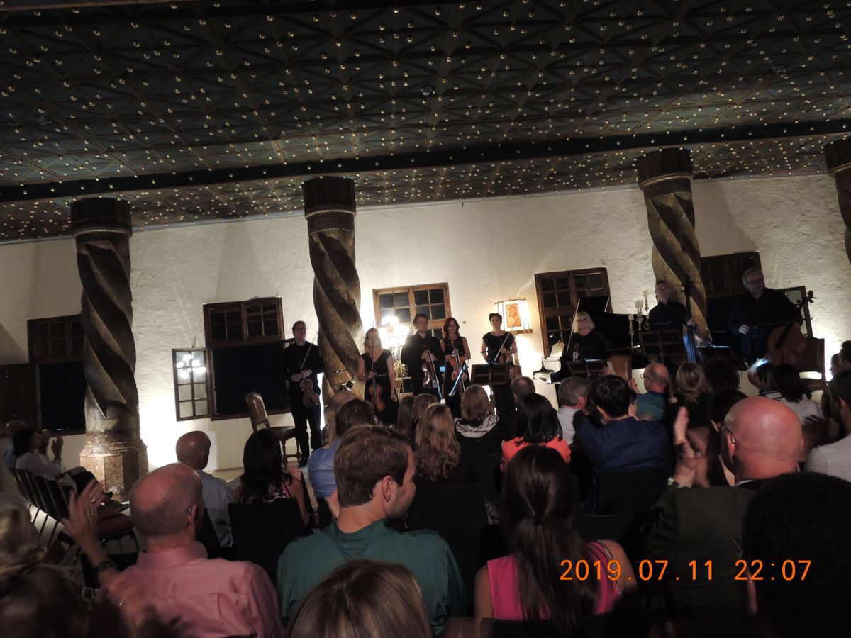 食事も最高においしかったです。スパークリングワイン一杯は付いていましたが、その他追加の飲み物、食後のコーヒーは支払いました。夏休みということもあり、旅行者が多かったです。セミフォーマルとありましたが、Tシャツ、短パンの人も多く、普通の服装で全然大丈夫な感じでしたが、せっかくなので少しオシャレして行きました。演奏中は写真撮影禁止とドイツ語、英語、日本語、中国語など数カ国語で説明があったにもかかわらず、写真を写してスタッフから注意を受ける人がいて残念でした。演奏はすばらしく、優雅なひとときでした。
