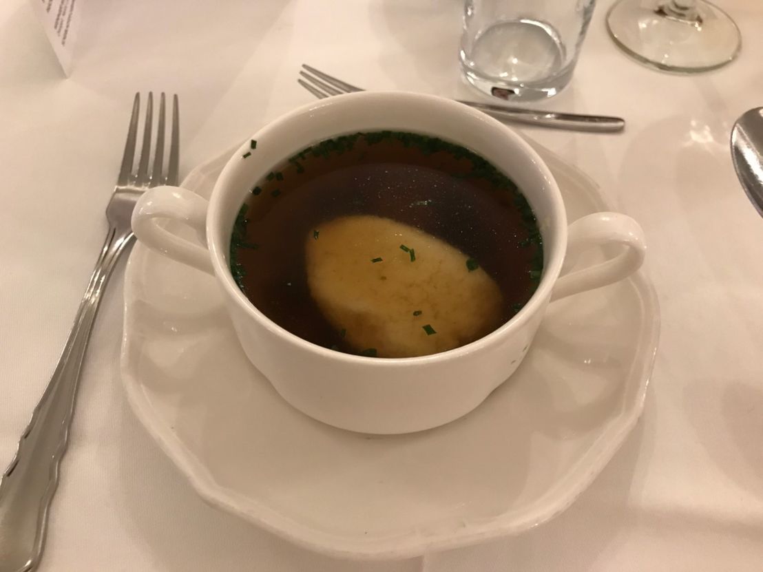 食事は、メニューが決められており選べなかったのですが、前菜が、ダンプリングのスープで、メインが厚くて硬いローストビーフのようなお肉でしたが、まずディナーですが、スープはしょっぱいし、お肉は硬くて私の口に合いませんでした。飲み物は別料金です。お料理は、お店に来た順番に給仕されるのではなく、厨房から近い席に人から給仕されていた感じで、早く来た私たちより後から来た人の方が早く食事を終えて会計されてコンサート会場に向かわれており、コンサートの席は自由席なのにレストランで待たされる時間が多く無駄でした。またコンサートの休憩時間に席を離れるのですが、自由席なのでその間に席の取り合い?があり自分たちが座っていた席を取られたB席の人が空いていたA席に勝手にうっってしまったりとかなりアバウトな感じでした。コンサートは、舞台から客席が縦に細長く、特にバレエは踊りがよく見えないのでドタバタしている音と音楽を聞いている感じでした。演奏もそんなにいいとも思えず、これで1人117ユーロはもったいないです。