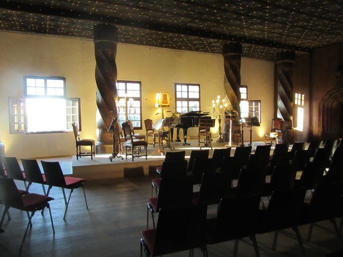 とっても素敵なお城のコンサートでした。7月だったので、夜8時くらいに夕日が差し込む、まさに最高のシチュエーションでした。自由席は、一番後ろの列で一列に並べられた席になります。それでも十分演奏者の様子が見えて楽しめました。