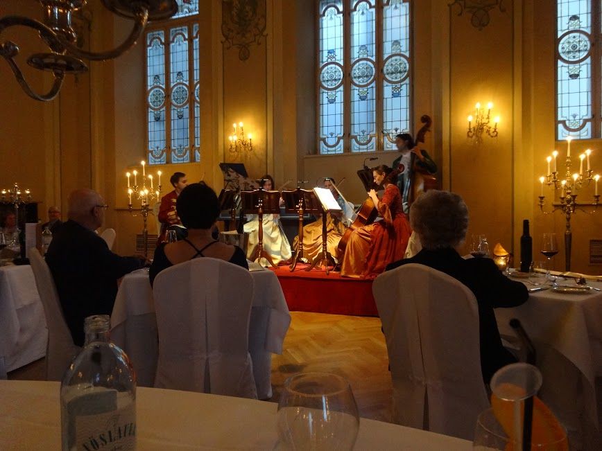 ホテルブリストルでのディナーはサービス 料理 ロケーション全て良かった。モーツァルトのコンサート会場へも徒歩圏内であったが バルコニー後ろの席で全くオーケストラが見えず 音だけの鑑賞だった。