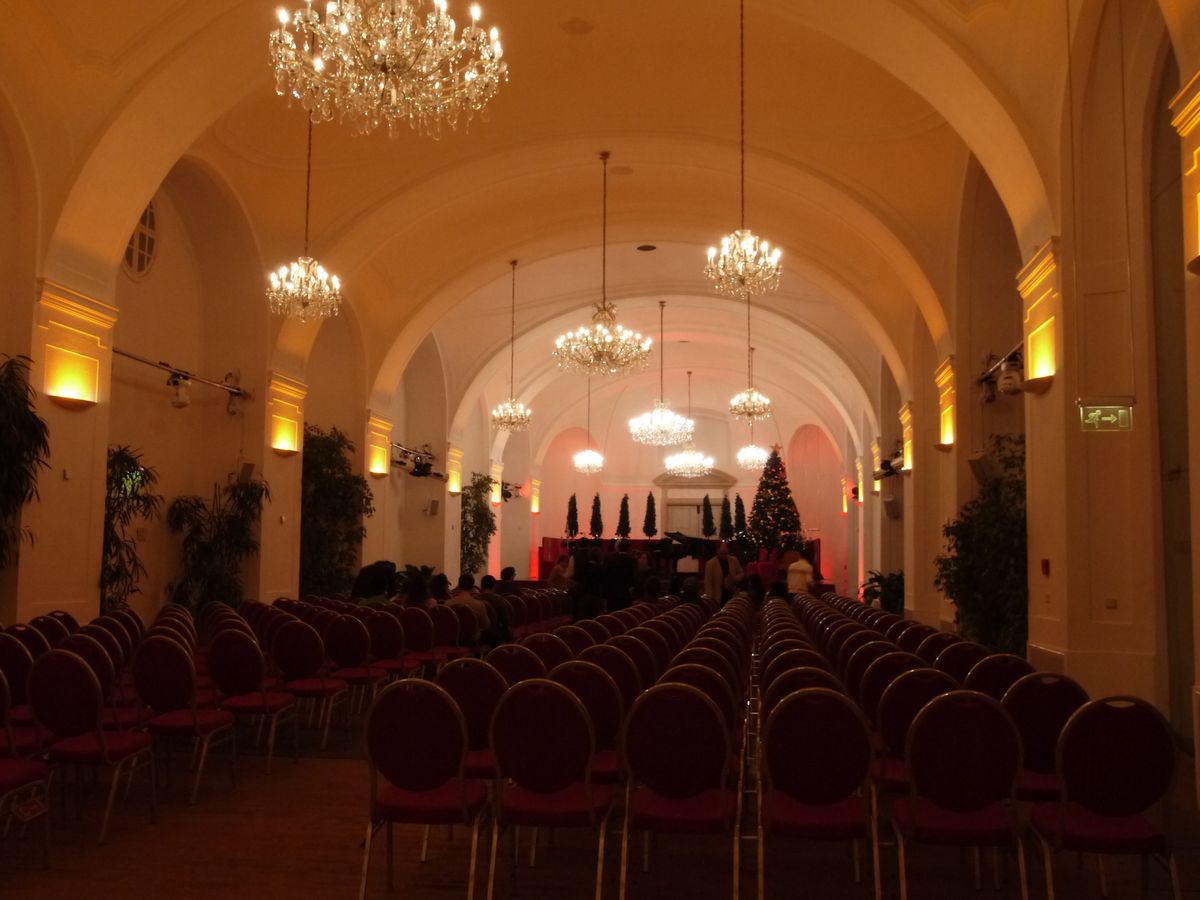 クアサロンは地下鉄Stadtparkからすぐのところにあり、初めての地でも迷わず行くことができました。席は指定ではなくカテゴリーごとに早いもの順ですので、早めに行った方が良い席に座れます(開演間際になると、中国・韓国の団体客が何列も陣取ります。)内容はクラシックに詳しくなくても充分楽しめるものでした。