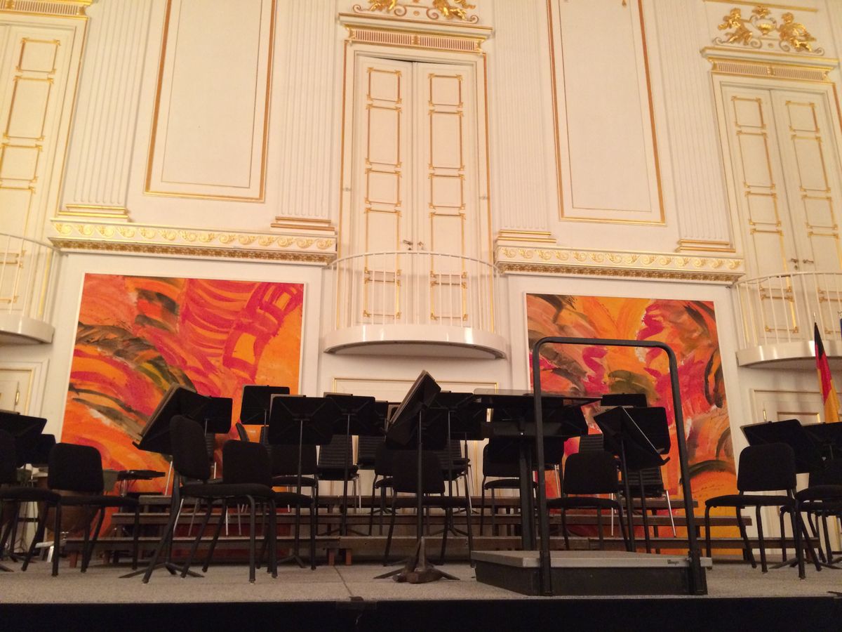 第二に会場がアンバランス。 黄金ホールと呼ばれる豪華な天井、壁の装飾に比べ、ただ床においてある木の椅子がなんとも不調和。