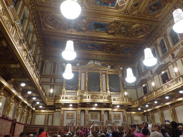 私たち母娘は夕方ワンピに着替えホテル ブリストルへ。ホテルへ入ると直ぐ右手にコンシェルジュがいたので、黄金ホールへの道順を教えてもらったあと正面のレストランへ。食事は少食の私に丁度いい量で美味しかった。ホテルを出て徒歩5分ほどで黄金のホールへ着き、2階C席へ行くために急な階段をパンプスでグルグルグル…と駆け上り少々疲れた。座席は2階の最後列で、私の横には、ある国の団体客がずらっと座っていた。(あえて国名は書きませんが、この国の人たちは日本にもたくさん来てて、やはり団体で行動し爆買いとかしていますね)演奏が始まり綺麗な音色が聴こえ始めて直ぐに、私と同じ列や周辺にいるその国の人たちが一斉に写真やビデオを撮り始め、撮影時のシャッター音、そして誰かが床に物を落とす音、更に私の隣の老人男性は大きな声で話し始め、更に誰かのスマホの着信音。演奏中なのに信じられない行為ばかり!!全てある国の団体客の行為です!!音楽の都ウィーンで静かにクラッシックを聴き素敵な夜にしたかったのに彼らの迷惑行為で台無しになりました!コンサートそのものは馴染みの曲を中心に演奏してくれて、最後はヨハン・シュトラウス1世のラデツキー行進曲でオーケストラと観客が一緒になりとても良かったのですが。