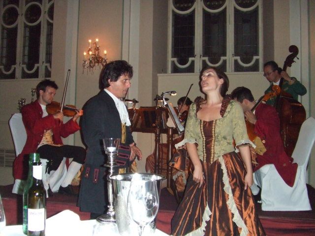 シェルブルーン宮殿でのコンサートと名づけられていますが、開催場所は宮殿の本館ではなく、外側の部屋で残念でした。また内容も演奏、歌、ダンスとバラエティーに富んでいましたが、いずれももう一つでした。ディナーの場所とコンサートとの場所が離れすぎているのが不便であった。