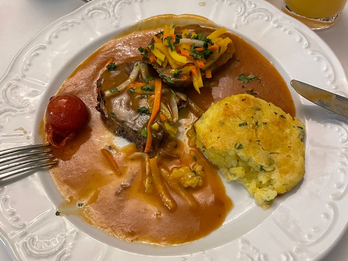 ディナーのレストラン「ターフェルシュピッツ」は雰囲気がよく、店員の接客態度も礼儀正しくて、気持ちよく食事ができました。料理もおいしかったです。