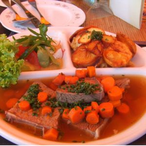 私たちはセント・ギルゲンにある「ミューラードル」という居心地の良いレストランでランチを取りました(www.muehlradl-stgilgen.at)。ヴォルフガング湖の景色は美しかったです。ランチには地元の料理バウエルンシュマウスをソーセージと牛肉と一緒にいただきました。その後、モントゼーの湖畔に行き、小さな教会を訪れ、町を散策しました。すべてを見るのに十分な時間がありました。