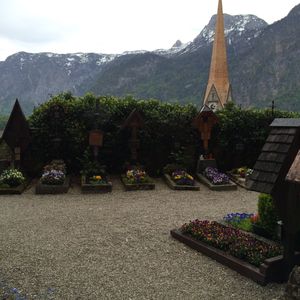 郊外のサウンド オブ ミュージックのロケ地を巡り、湖を見下ろすレストランでティータイムをとってからハルシュタットに着きました。2時間半の自由時間に昼食と散策をしました。観光船がない時期なのが少し残念でしたが、景色は最高でした。曇りでも十分堪能出来ました。