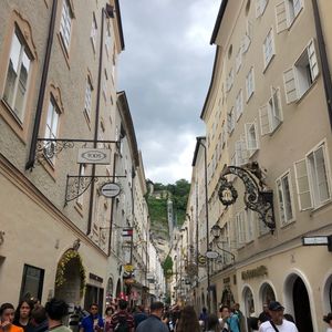 メンヒスベルクのエレベーターに乗ってキレイな景色を見たり、モーツァルトの生家でオーディオガイドを聞いたり、ケーブルカーに乗ってホーエンザルツブルク城塞に行ったり☆