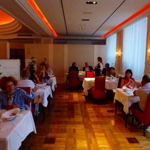 クアサロンのホールはさほど大きくないですが、グループツアー客など大勢来ていて、ほぼ満席状態で驚きました。お客さんを飽きさせないように、演奏だけではなく、バレイやオペラなどもあり楽しめました。コースディナーも美味しく頂きましたが、サーブの間がありすぎて、食事にトータルで2時間位かかりました~!