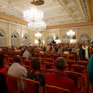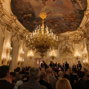 高級車での送迎、最前列の席、モーツアルトも演奏したという歴史ある宮殿で