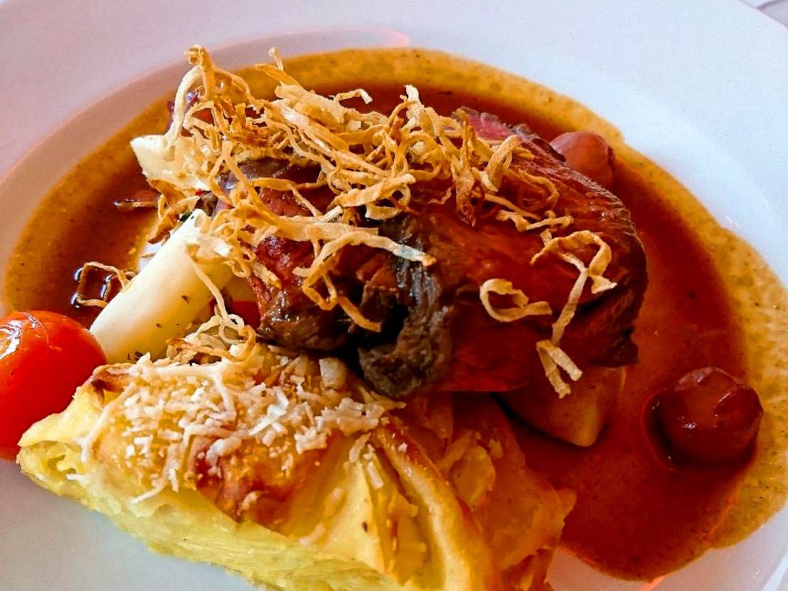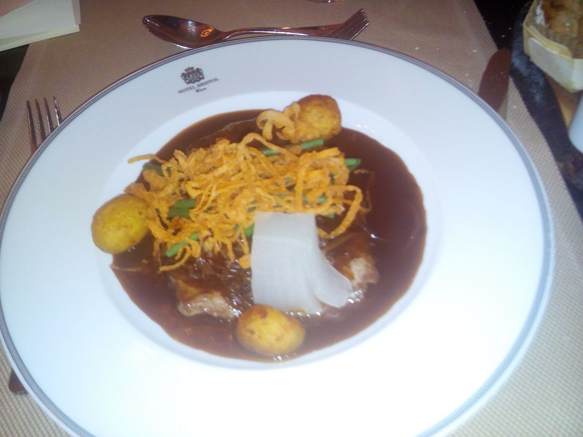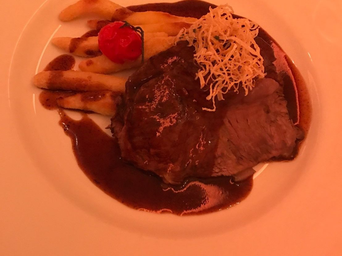 ホテルの高級レストランの食事は、メインの肉料理からデザートまで全て非常に甘かったです。