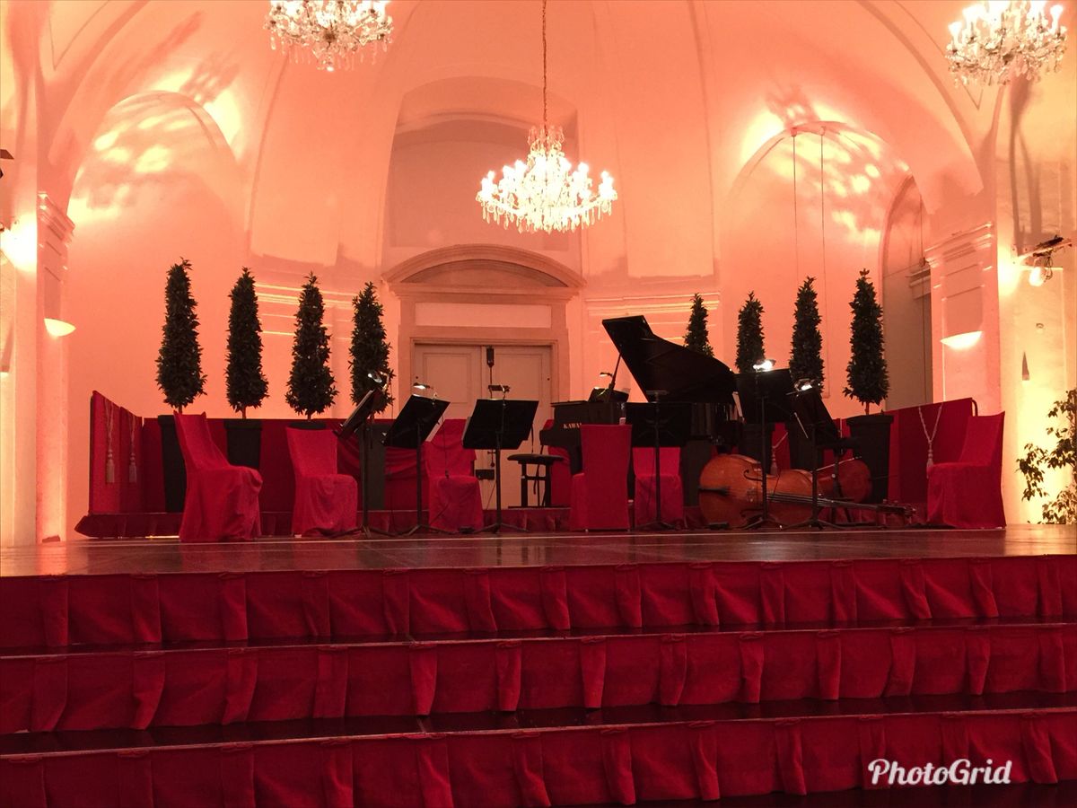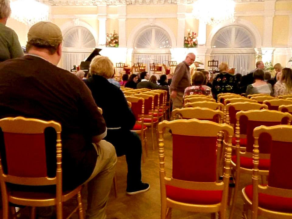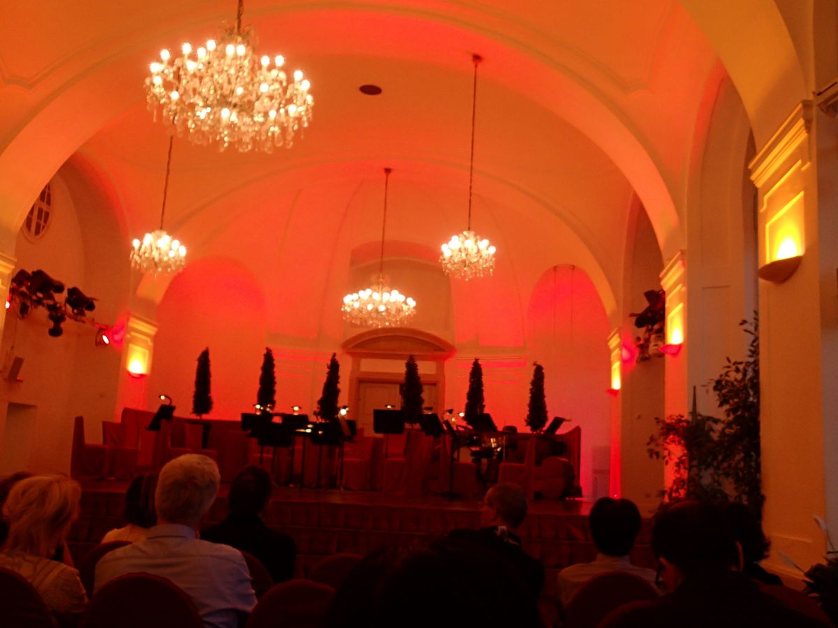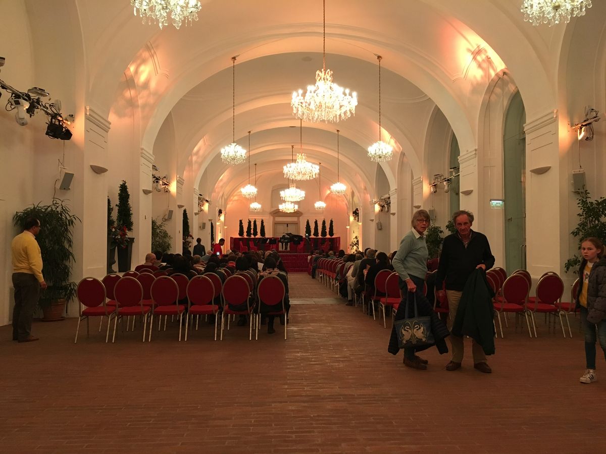 その後上階のコンサート会場に移動したところ、前から2列目中央という非常に良い席に案内されビックリです。この夜のコンサートは現地の人たちにも人気があったらしく約400席の会場が満席でした。(日本人はわれわれ2人だけ)