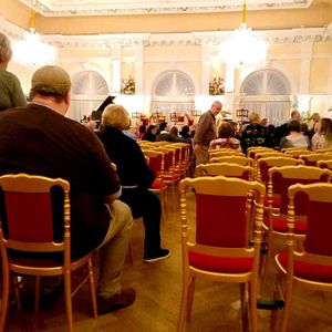 初めての楽友協会は、テレビで見るよりも内装が重厚で豪華なのに驚きました。ホールは想像していたよりやや狭い感じでしたが、中央10列目のスーペリア席で音響の良さは十分体感できました。演奏は観光客向けにポピュラーな演目でしたが、かなりの熱演で演奏者の表情も間近に見てとれ、十分楽しめました。特にソプラノとテノールのアリアと、クラリネット協奏曲は聴きごたえがありました。モーツアルトを楽しく聴ける演奏会です。