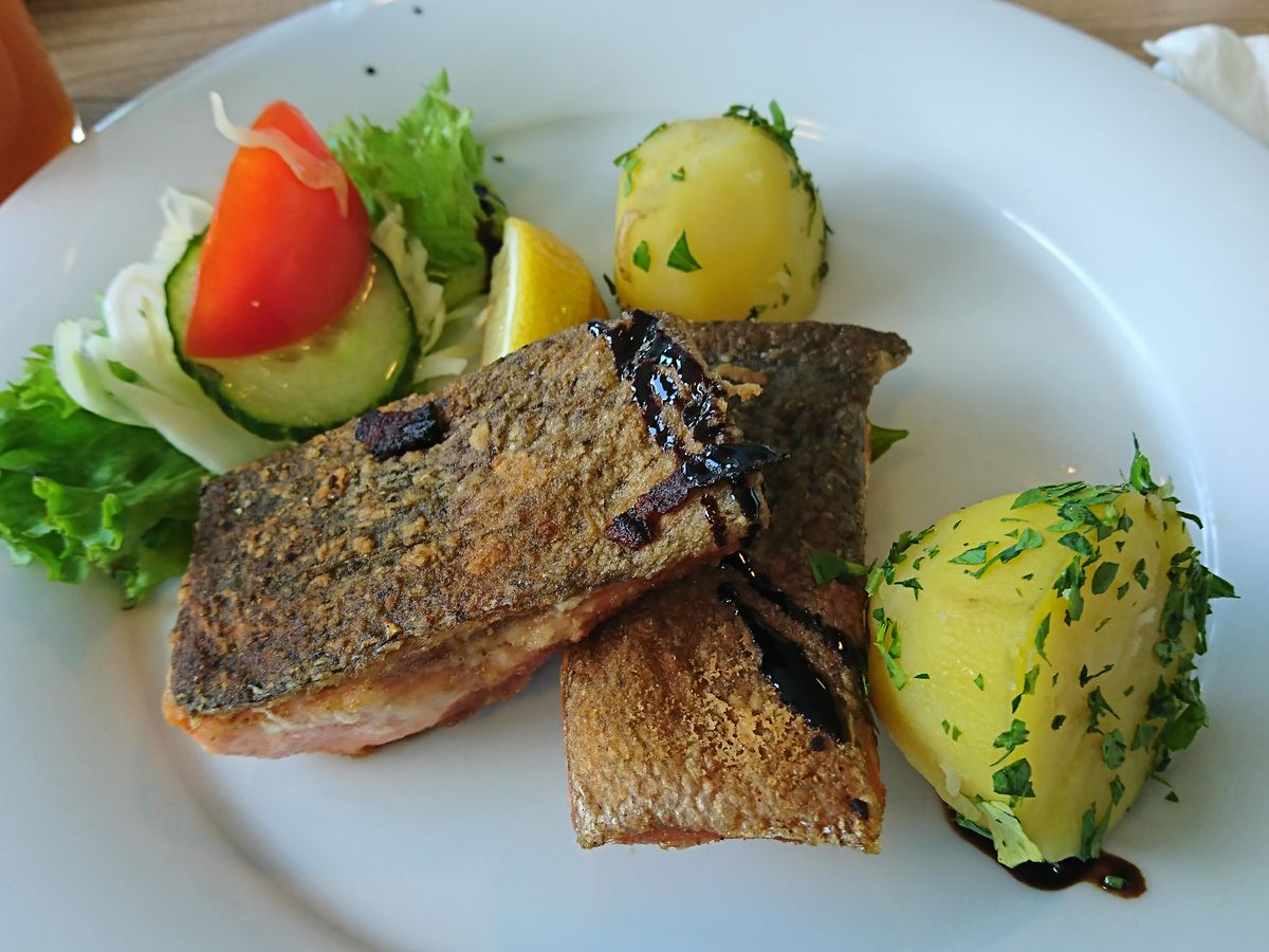 ヴァッハウ渓谷のクルーズでは乗ってすぐに食事が始まりますが、意外に美味しい食事で感激しました。マスののソテーだったと思いますが、美味しくて気に入って、このツアーの後のハルシュタットやザルツブルグでも注文したくらいです。