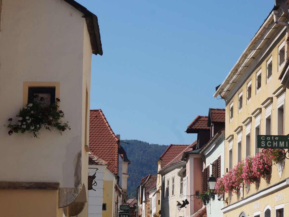 午前中に行く「クレムス」には、とてもきれいでかわいい住宅がたくさん。家根の色、外壁の色の使い方がとてもよく、きれいな街になっている。