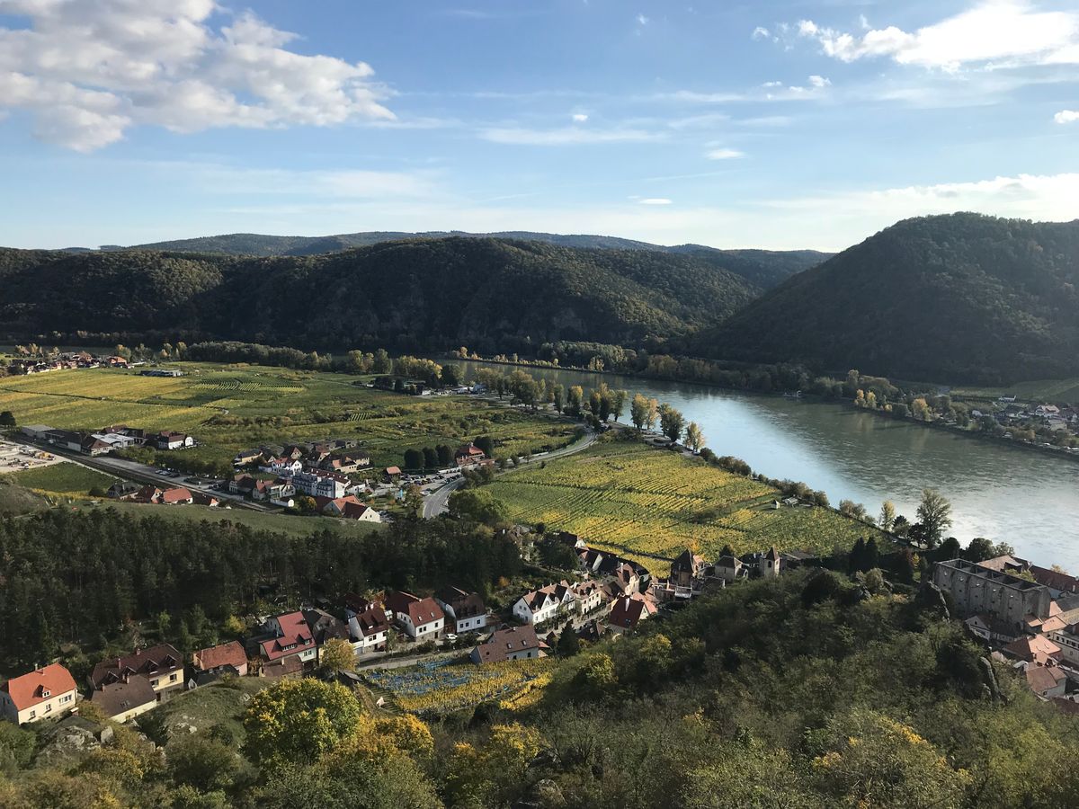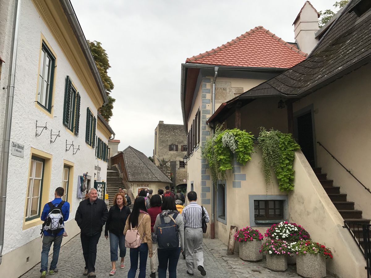 その後はメルクからバッハウ渓谷をデルンシュタインまでクルーズしますが、このデルンシュタインも、水辺にそびえる修道院の塔と岩山の砦、それらを囲むブドウ畑と絵になる路地の数々、と、大変に美しい町でした。
