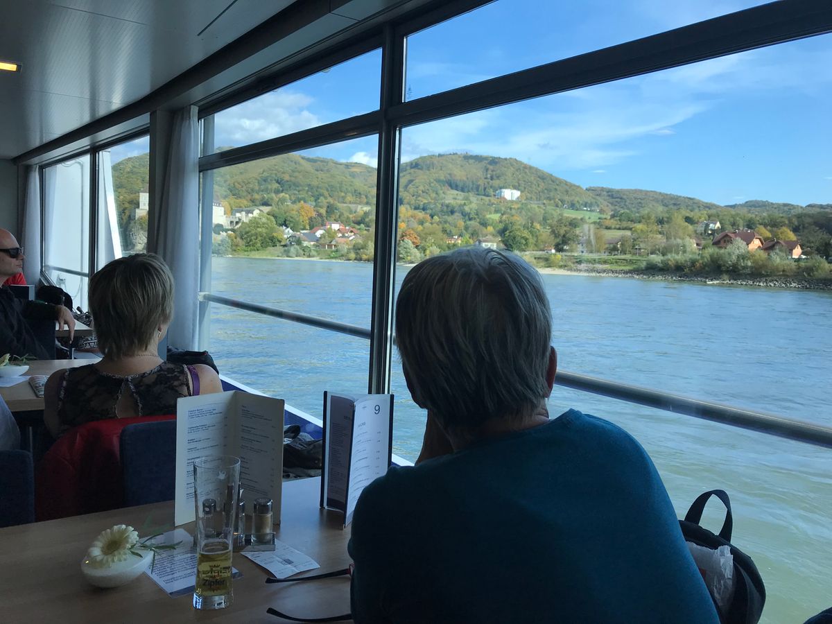 バッハウのドナウ川クルーズは個人で行くのは効率が悪いのでツアーにしました。ツアーでもバスで行く他社コースと電車で行くこのコースがありましたが、ローカル線を体験したくて電車のコースを選択しました。クルーズ船はとても新しくて窓が大きくて船内にいても景色を眺めるのには全く支障がなく、レストランのテーブルからクルーズを楽しめました。ただ、クルーズハイライトのショーンビュヘール城は下りの場合右手に見えますが、テーブルが左手だったのでこれはデッキに行って見ました。同じく右手に見えるアッグシュタイン城まではデッキにいました。ただ、その時間帯に飲み物の注文とかでばたばたしていたので、そのまま船内にいた人は見逃してしまったかもしれません。トイレがきれいだったのもよかったです。ガイドさんはとても博学の方のようで説明もとても興味深かったです。ただ、電車は自由席で、ウィーンからの電車はがらがらで問題なかったですが、乗り換えてメルクに行く電車は車両がひとつだけで、かなり混みました。乗車時間は30分ぐらいですが、乗り換えの時ホームを走らないと座れません。若い人にはどうってことないですが、年配にはきついかも。指定席ではなく自由席との案内が事前にあったらよかったです。