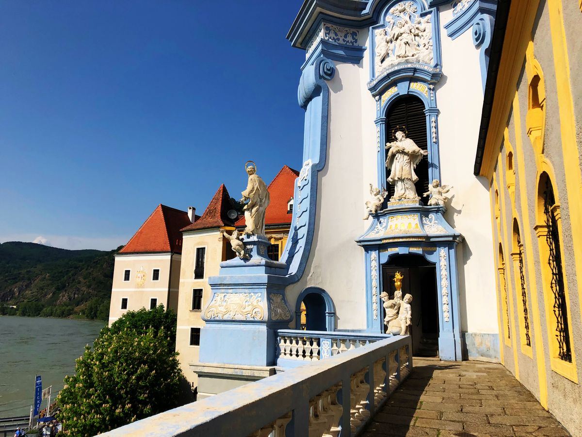 西駅から特急電車に乗るので既に旅気分満載です。途中立ち寄ったメルクの街並みや修道院から見下ろす景色、鳥のさえずり、すべてが美しかったです。クルーズはぜひ甲板に出ることをお勧めします。いろいろな国の方たちがくつろぎ会話している姿もまた楽しいです。クルーズの最終地点デルシュタインではぜひ修道院教会へ。有料ですが、テラスから見上げる教会の美しさは別格です。帰りはベンツのタクシーで駅まで。革張りの高級車での移動もまた良い思い出です。帰りの電車も2階建てで乗り心地も良く、終日楽しい旅でした。
