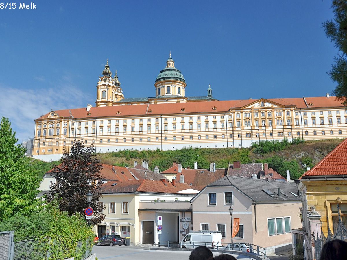 ツアースケジュールには「メルク修道院で各自昼食」とあるものの、クルーズで食事を取り終えているので昼食時間は実質1時間の自由時間。メルクの町並みを見学できるが、坂がかなり多い町なので高齢者には厳しそう。英語ガイド付きのメルク修道院は非常に素晴らしかった。教会部分が非常に美しい。