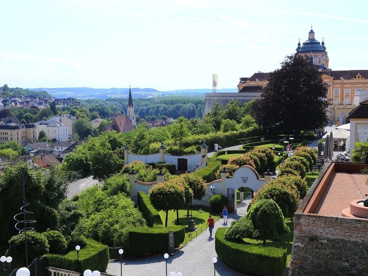 5.メルクに着くとすぐに「お昼時間」+「散策」になるのだが、その時に、「ミュージアムには後から行くから、それ以外の場所を見ていなさい。散策をしても良いし、レストランにいてもOK」と言われた。事前にお昼を船で済ませておくと、メルクでの滞在時間をすべて散策等に当てることができ、効率がいいのだが、そういったガイドは全くなかった。また、修道院の教会は今見ておく必要があるのか、それとも、これから行く「ミュージアム」の中にあるのかといった情報もなかった。メルクの街まで行ったグループもいたが、修道院から街までは相当きつい階段なので、集合時間前に戻ってくるのは大変だったようだ。自分で時間を見て判断するか、ガイドに確認する必要がある。