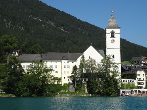 内容は、1.レオポルドスクロン宮殿を遠くから眺め2.ヘルブルン宮殿内にあるガラスのパビリオンのみを見て、ここからバスで1時間ほど移動し、3.ザンクト・ギルゲンからヴォルフガング湖を眺め、4.結婚式を挙げたモント湖畔の教会の街、モントゼーで約45分の自由時間。そしてミラベル庭園前の同社申込所にて解散、でした。