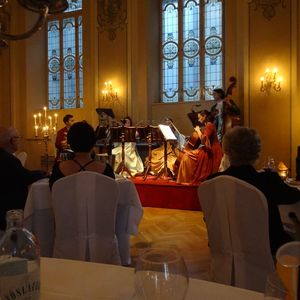 ザルツブルクは1泊と短い滞在だったので,食事をしつつコンサートも楽しめる,こちらのツアーを申し込みました。エクスクルーシヴ・コースは,席が横並びで正面を向いており,コンサートを十分に楽しむことができました。コンサートの内容も,コミカルな掛け合いもある等,充実した内容でした。