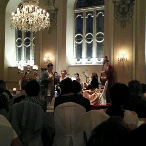 男の人は写真のひとで、女の人は、日本人のかたでした。 四重奏とオペラでとてもいい雰囲気です。