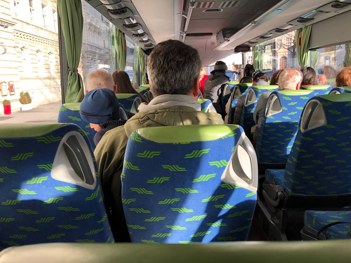2連結バスは満員でしたが日本人参加者は我々家族三人だけで、その他は欧米からの参加者でした。