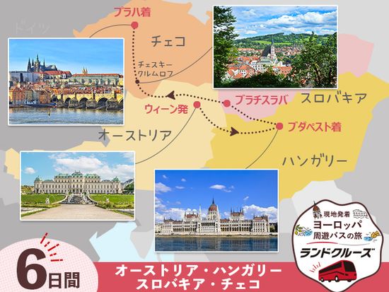 ウィーン発プラハ着 中欧周遊ツアー 世界遺産ウィーン+ブダペスト+ブラチスラバ+プラハ< 6泊7日※/月曜/1名催行/日本語>