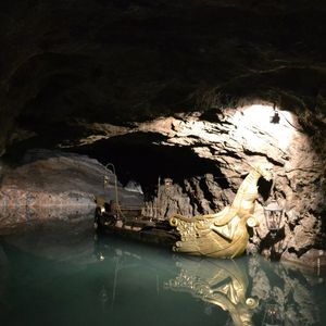 地底湖に期待していたのですが、石灰を発掘した穴に水が溜ったもので人口的に出来た湖でした。ボートに乗って15分くらいで終了でした。