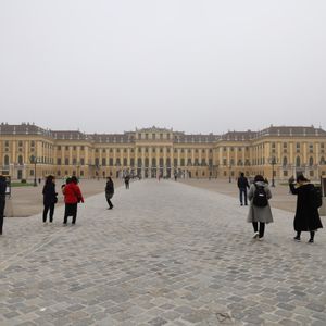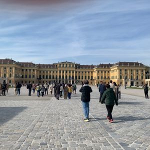 偶然にも、以前別のツアーでお世話になったガイドさんに、再びガイドしていただくこととなりました。そのため、行きのトラムでは話に花が咲いてとても楽しかったです。コロナが落ち着いて観光客が戻ってきているシェーンブルン宮殿ですが、日本人観光客は少なかった印象です。雨が降ったり止んだりの天気でしたが、門のところでは薄日も。