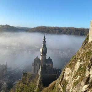 先にディナンに立ち寄り自由時間は1時間お城に登りたかったので行ったところロープウェイが休みと言う事408段ある階段を休み休み登りました。上から見た景色は少し霞んでいましたが、最高でした。帰りも408段降りなくては行けないので大変でした。