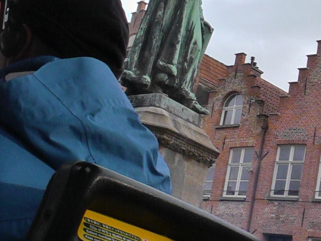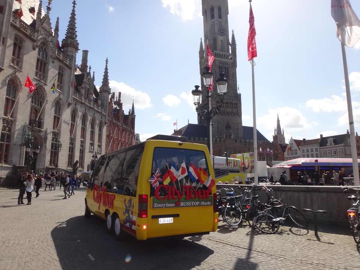 ブルージュ駅からマルクト広場までタクシーで十数分です。黄色のミニバスはすぐに見つかりました。乗ったところで、中年の女性運転手が運転席でサンドイッチパンを食べていました。日本では考えられないことです。でも親切、丁寧に小さなブルージュの街を回ってくれました。英国人のグループが後から乗り込んで来て、騒いでいた事をのぞけば、すばらしい中世の街めぐりを堪能できた事に感謝します。