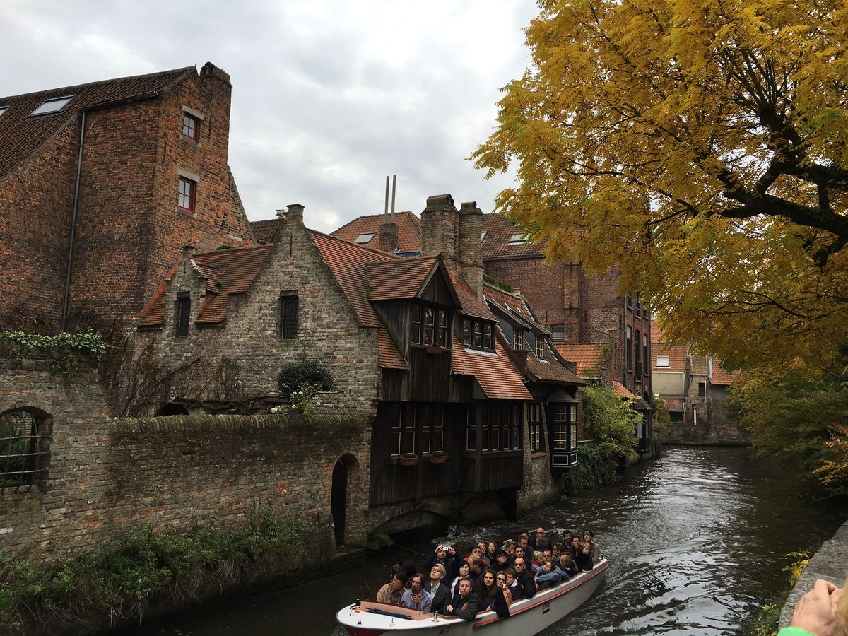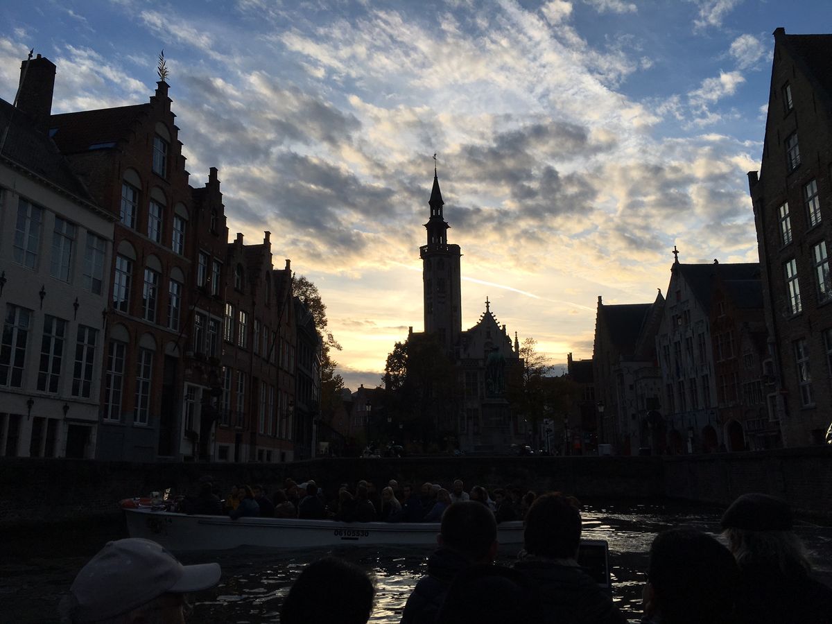 オプションで参加したブリュージュのボートツアーも中世の景色の街並を見ることができて