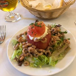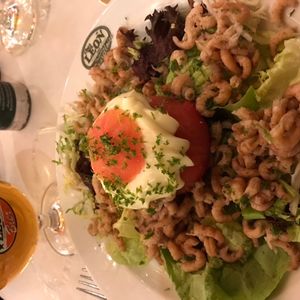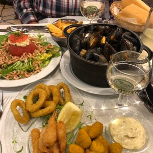 サラダも、ムール貝もボリュームがあり、他にムール貝やエビ、イカのフライにワインを頼んでお腹いっぱいになりました。1番人気店で時間によってはとても混雑しているので、こちらのクーポンで予約して行くとスムーズです。お店のメニューにも同じセットで同じ値段です。