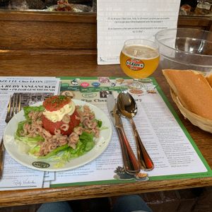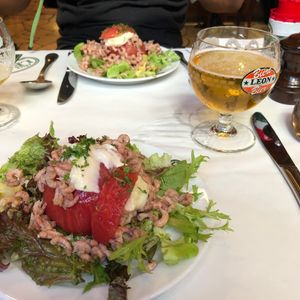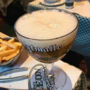 朝6時にブリュッセルに到着し、そのまま観光してからホテルにチェックインをして予約の時間まですこし休憩をしていたら、思わずうとうとしてしまい気がつけば予約時間を1時間オーバー。皆様の書き込みなどをみていて人気店で混み合っているようなので恐らくもうキャンセルになっちゃっているだろうなと思いつつ、どちらにせよ夕食はどこかで摂らなければならないのでダメ元でまずお店に突撃。 バウチャーを出したところ、遅れたにもかかわらず問題なく席に通してくれました。(もちろん並んでいるグループを飛ばして!) 食事は申し分なく、ビールもおいしく頂けました。